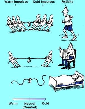 tug-of-war, with the cold impulses at one end of the rope and the warm